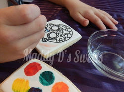 These are great for children and adults a like! They can be personalized for any occassion such as birthday parties. Simply use a littel water to activate the "paint" and use the mini paintbrush to create your own own unique peice of art. Kids love it so much that they don't want to eat their own masterpeices!